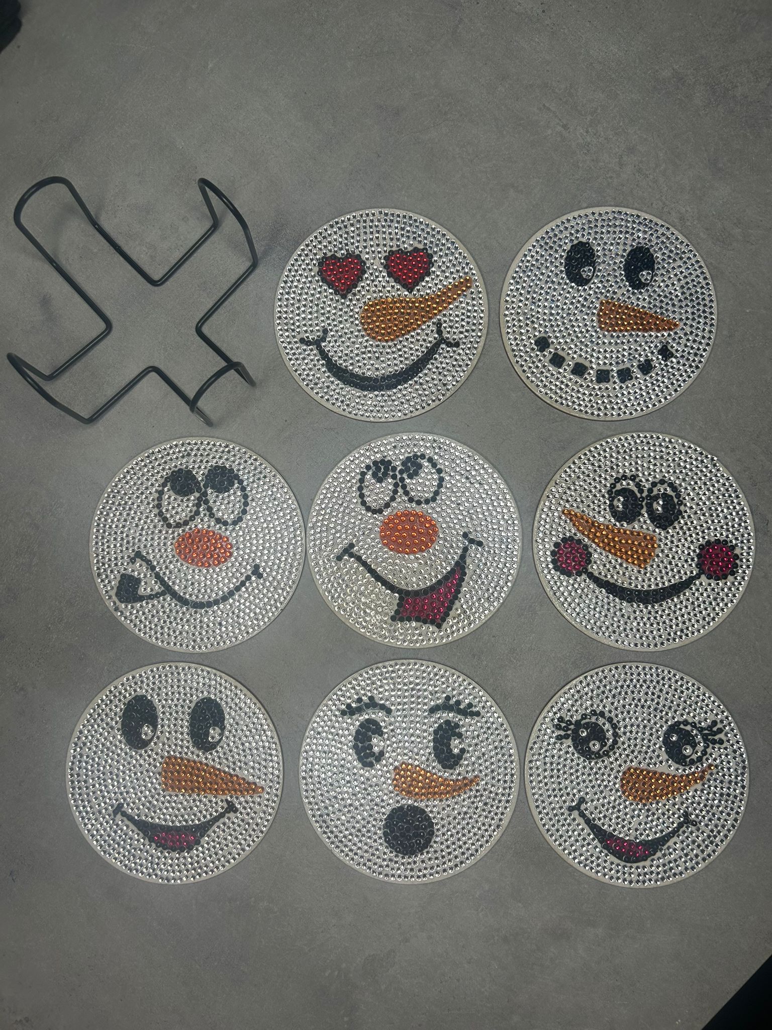 Brighten up your holiday table with this sparkling set of 8 diamond art snowman coasters! Each one features a cheerful snowman design with shimmering rhinestone accents that catch the light beautifully. Perfect for protecting your surfaces in festive style. Great for Christmas parties, stocking stuffers, or a unique handmade gift!